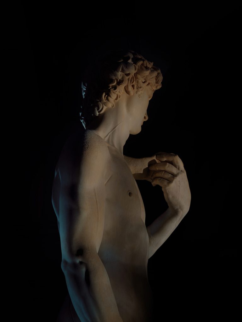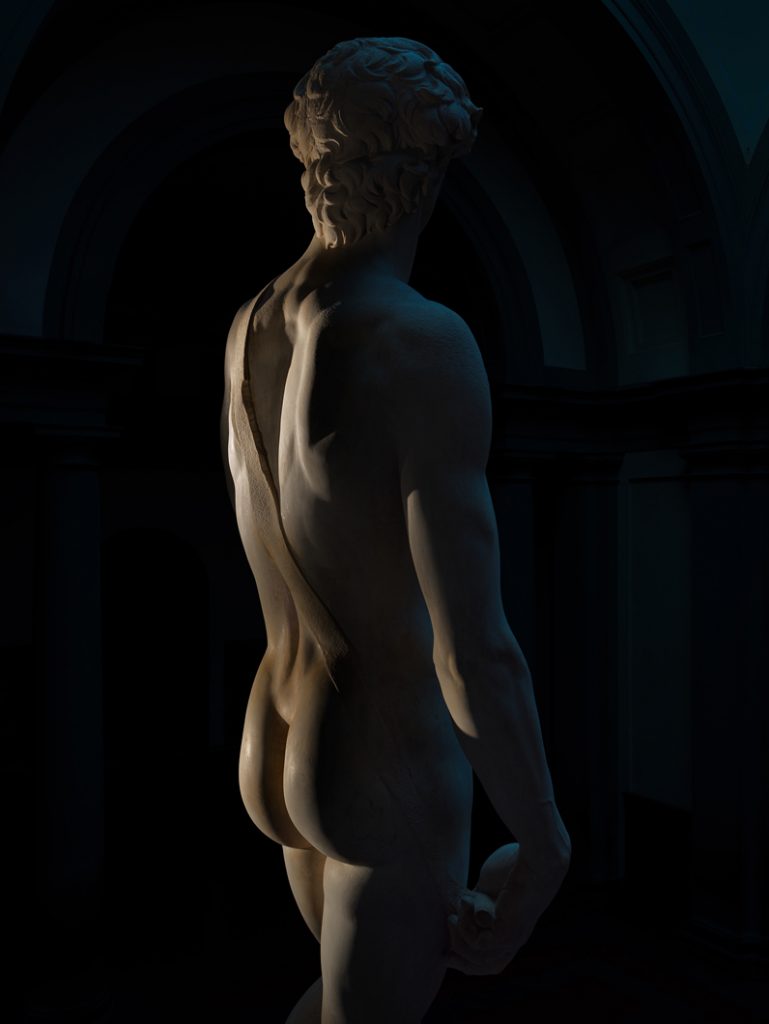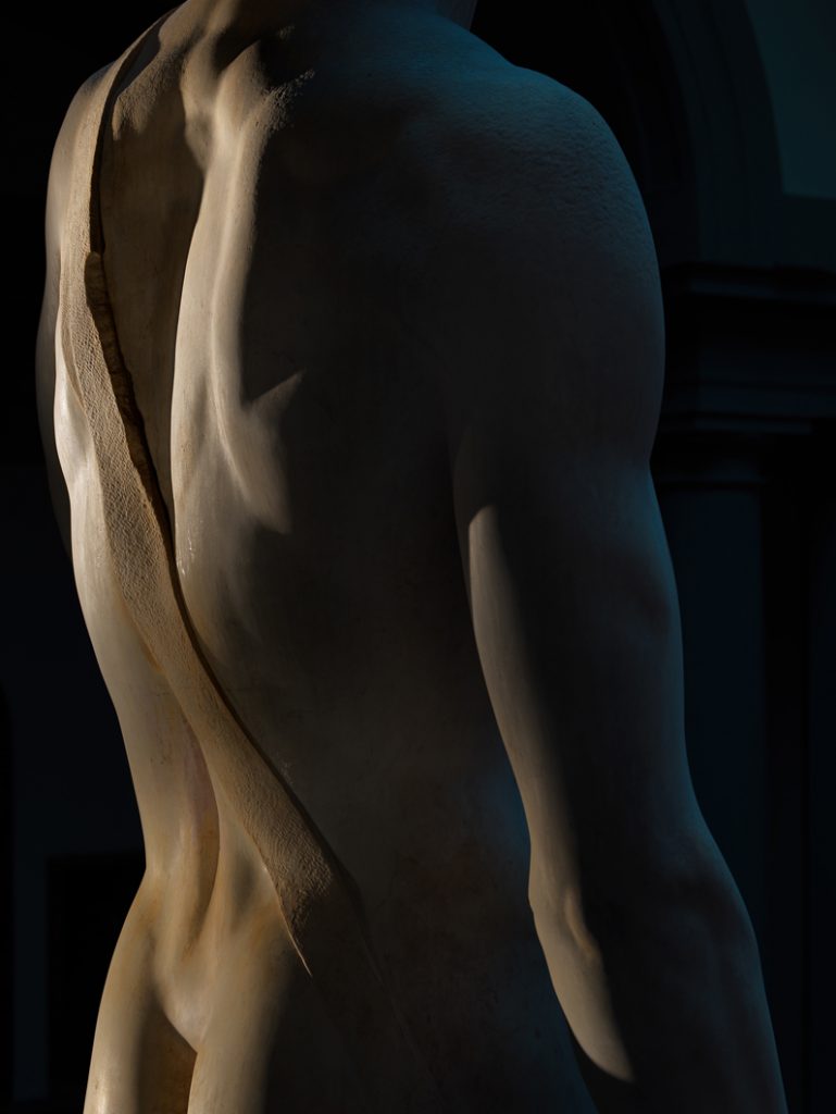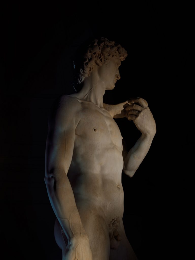 Le 8 septembre 1504, on montra la statue aux habitants en suscitant l’admiration générale. À l’origine, certaines parties étaient dorées : une guirlande sur la tête, le tronc derrière la jambe droite et la fronde. En tenant compte de la base sculptée, la sculpture  mesure 517 cm de haut et pèse 5560 kg.