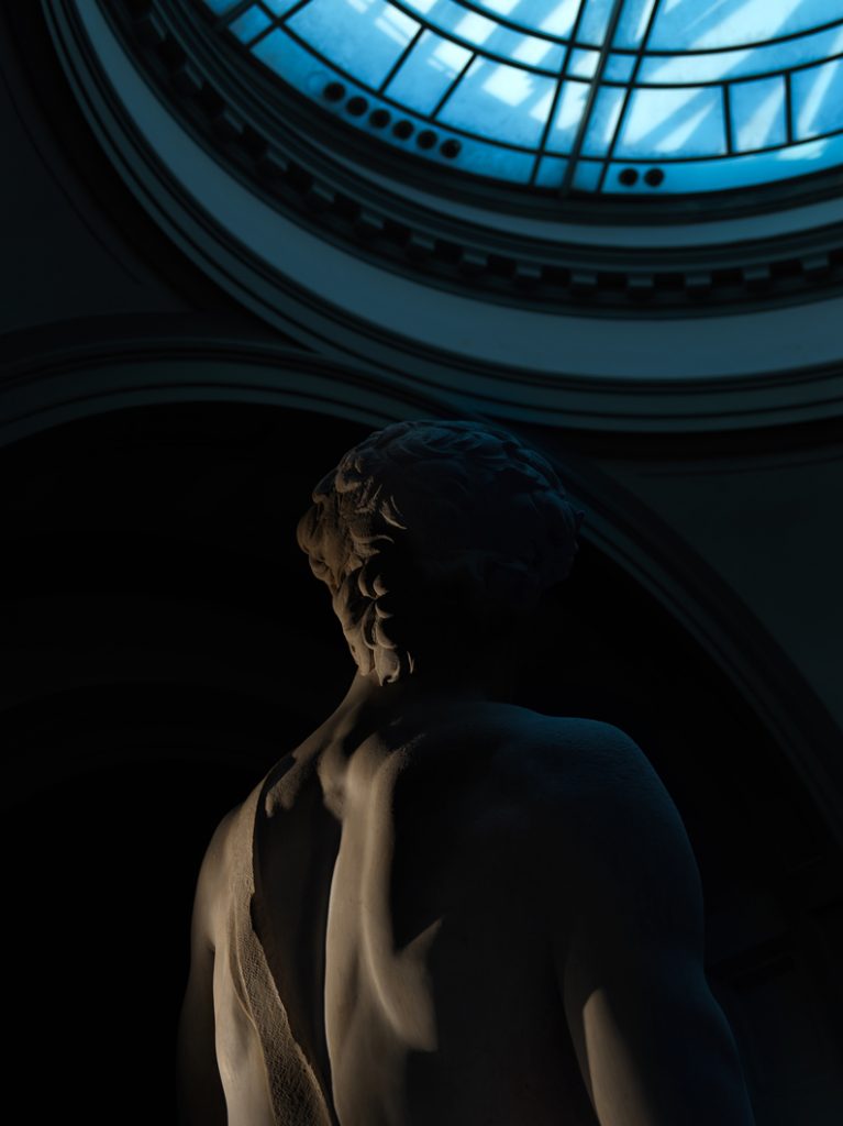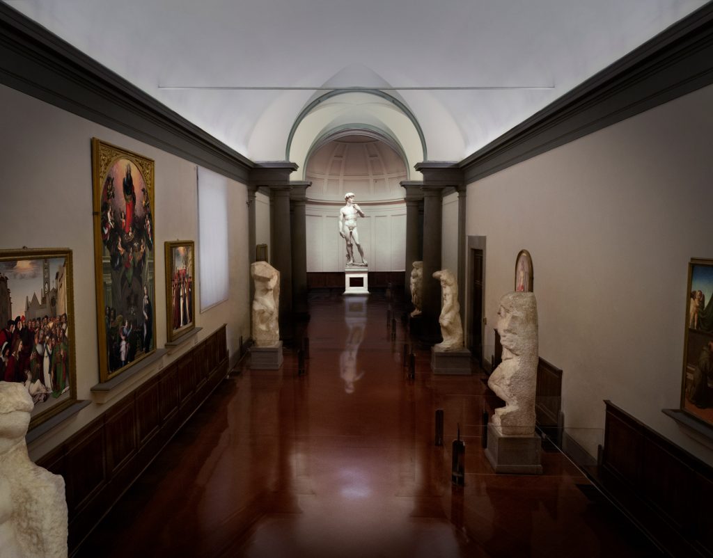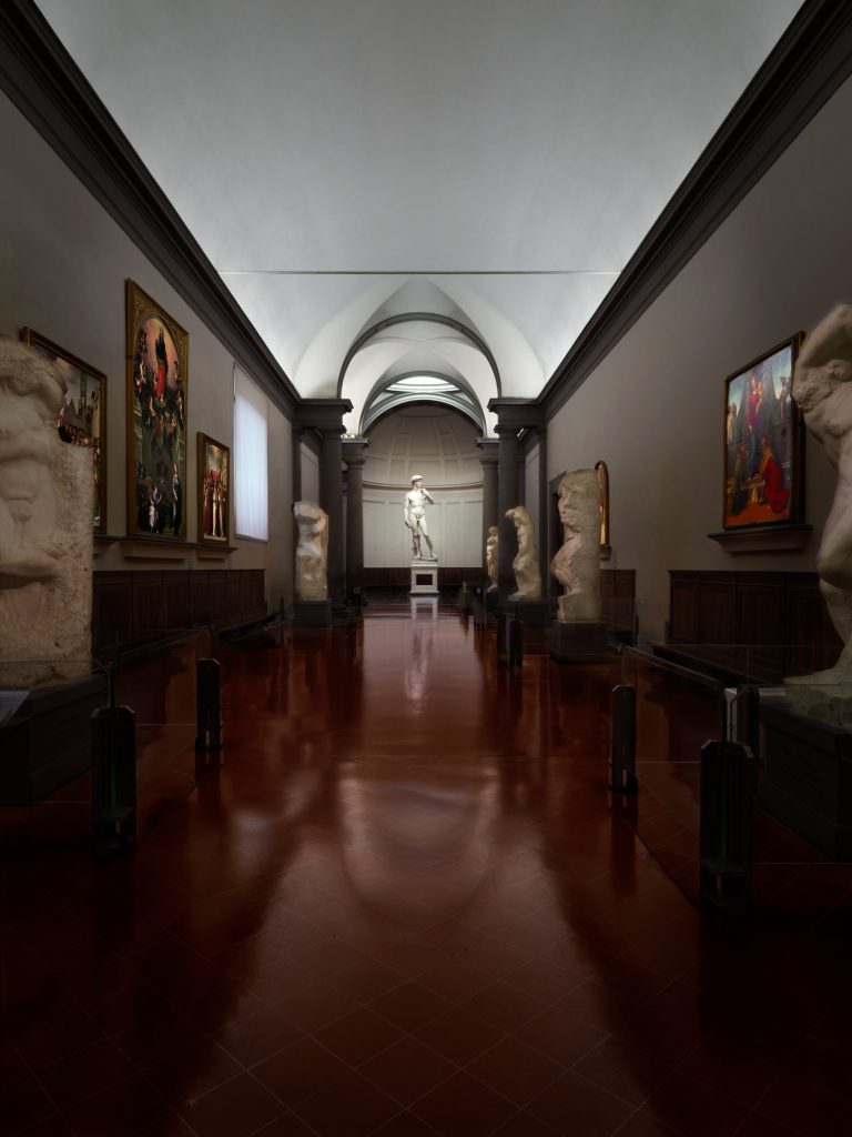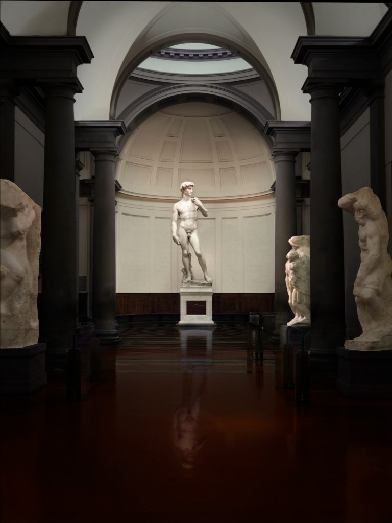 L’œuvre fut commandée à Michel-Ange par les ouvriers de la cathédrale de Florence le 16 août 1501 pour la somme de 400 ducats. Le 25 janvier 1504 une commission formée par les plus grands artistes de l’époque (parmi lesquels on trouvait Léonard de Vinci, Sandro Botticelli, Filippino Lippi et le Pérugin) décida que la sculpture devait être placée à l’entrée de Palazzo Vecchio, en tant que symbole de force et d’indépendance des Florentins.